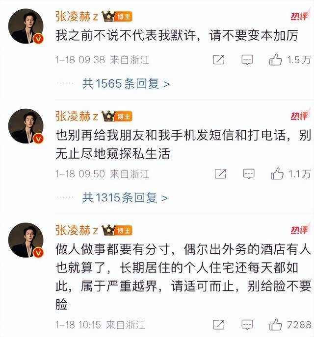 1月18日,艺人张凌赫在社交媒体上发文喊话“私生饭”,呼吁众人理性追星。