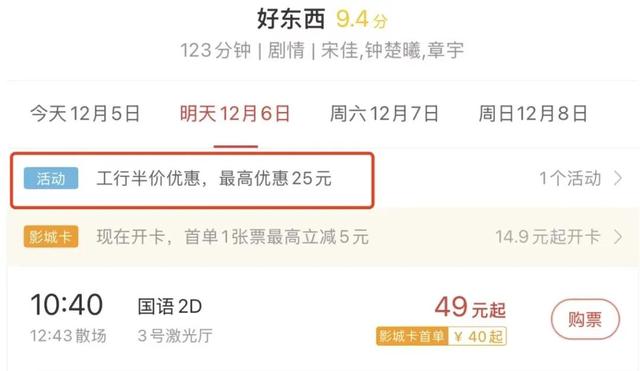 消费者可通过猫眼微信小程序或App,使用工行卡支付,享优惠看爆款影片、随机立减。