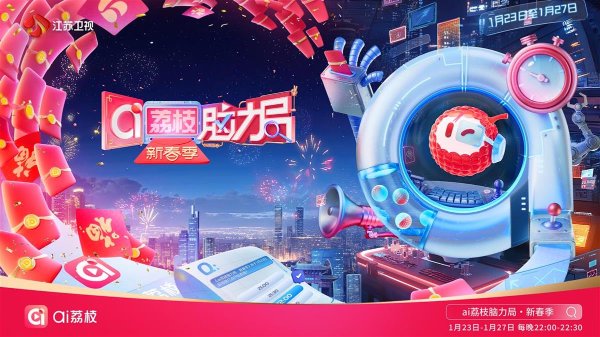 1月23日至27日,直播答题节目《ai荔枝脑力局·新春季》将在江苏卫视和ai荔枝客户端大小屏同步直播。节目将打破常规,以“大小屏同步直播+AI出题互动”的方式,打造一场全民参与、全域互动的知识狂欢,在分享新春红包的欢乐氛围中喜迎乙巳蛇年的到来。