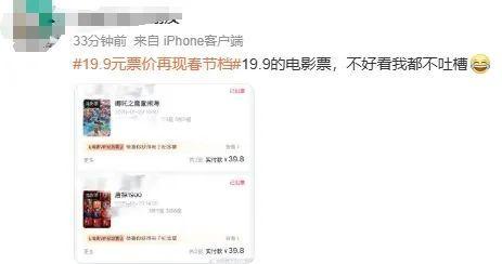 随着春节档预售开启引起网友热议话题#19.9元票价再现春节档#也很快登上热搜