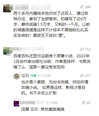 文章作者“猛哥”称,爱奇艺这部名为《漂白》的新剧,无论是剧名,还是剧情,“漂白”了我2012年发表于南方都市报的深度调查报道《漂白》。爱奇艺的《漂白》创作团队事先没有联系我或南方都市报,在宣发材料中,也没有标示原作出处,在最需要尊重版权的影视圈,居然有如此明目张胆之行为,令人费解。