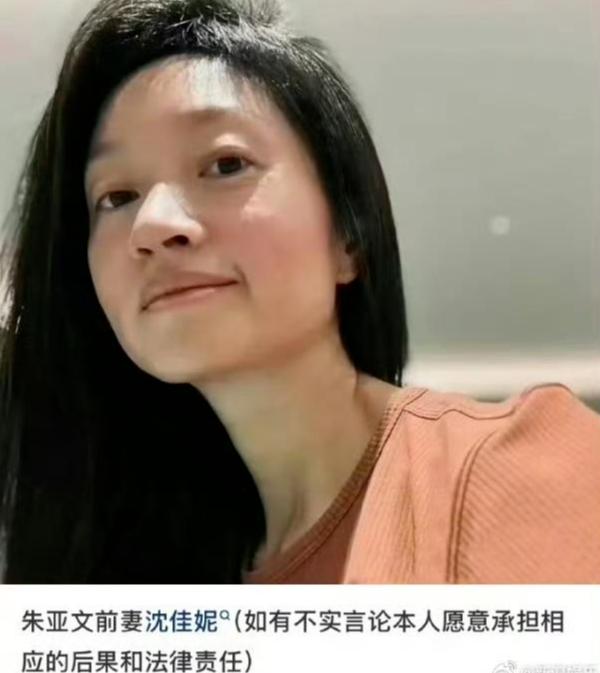 1月21日,有网友晒出沈佳妮的照片并配文:“朱亚文前妻沈佳妮(如有不实言论本人愿意承担相应的后果和法律责任)”,引发朱亚文与沈佳妮离婚的猜测。
