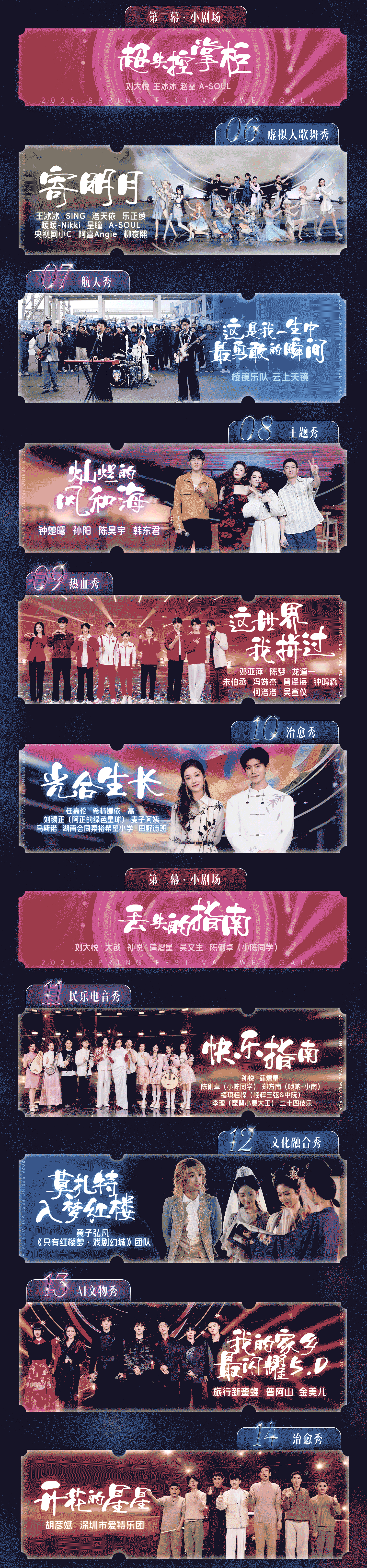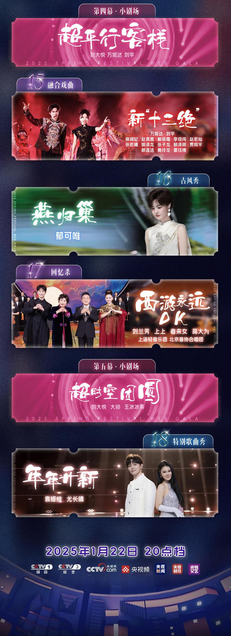 《中央广播电视总台2025网络春晚》 节目单抢先看!今晚8点档,CCTV-1综合频道、CCTV-3综艺频道及央视新闻、央视网、央视频等总台新媒体矩阵同步播出。