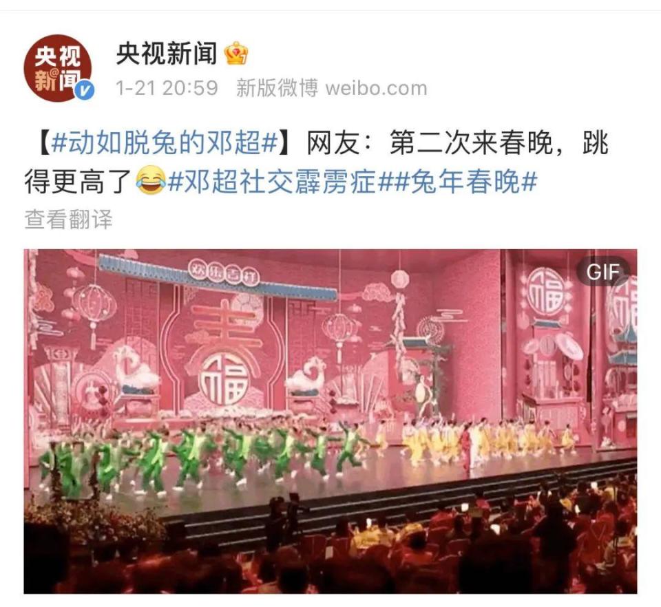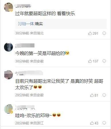 网友纷纷评论:第二次来春晚,跳得更高了,动如脱兔的邓超哈哈哈哈哈,春晚舞台最快乐的人。
