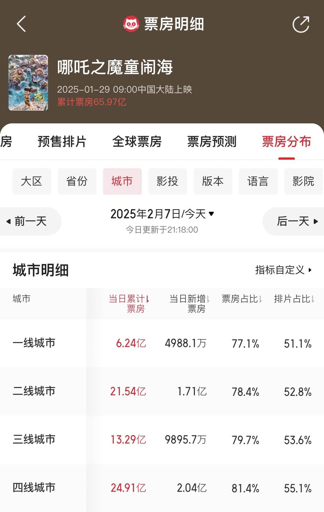 三四线城市为《哪吒2》贡献了超五成的票房图据猫眼专业版