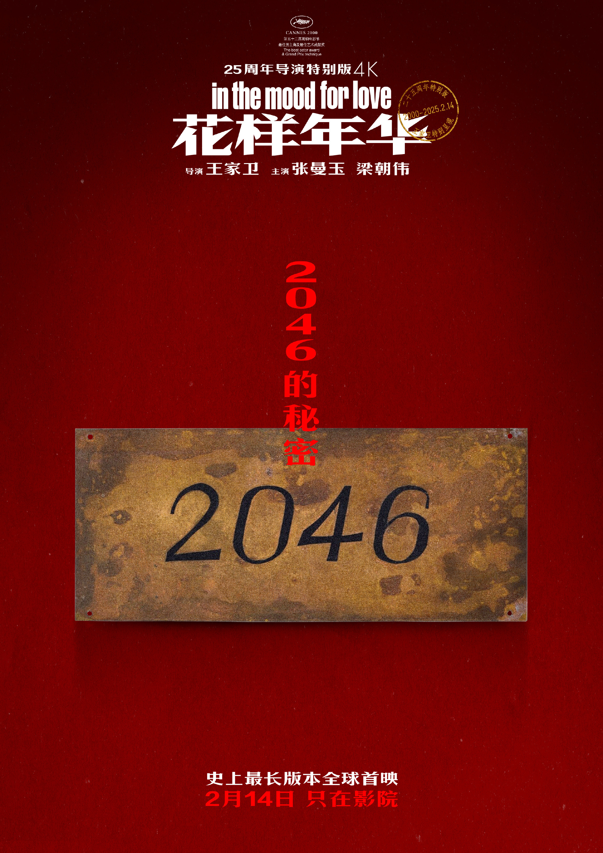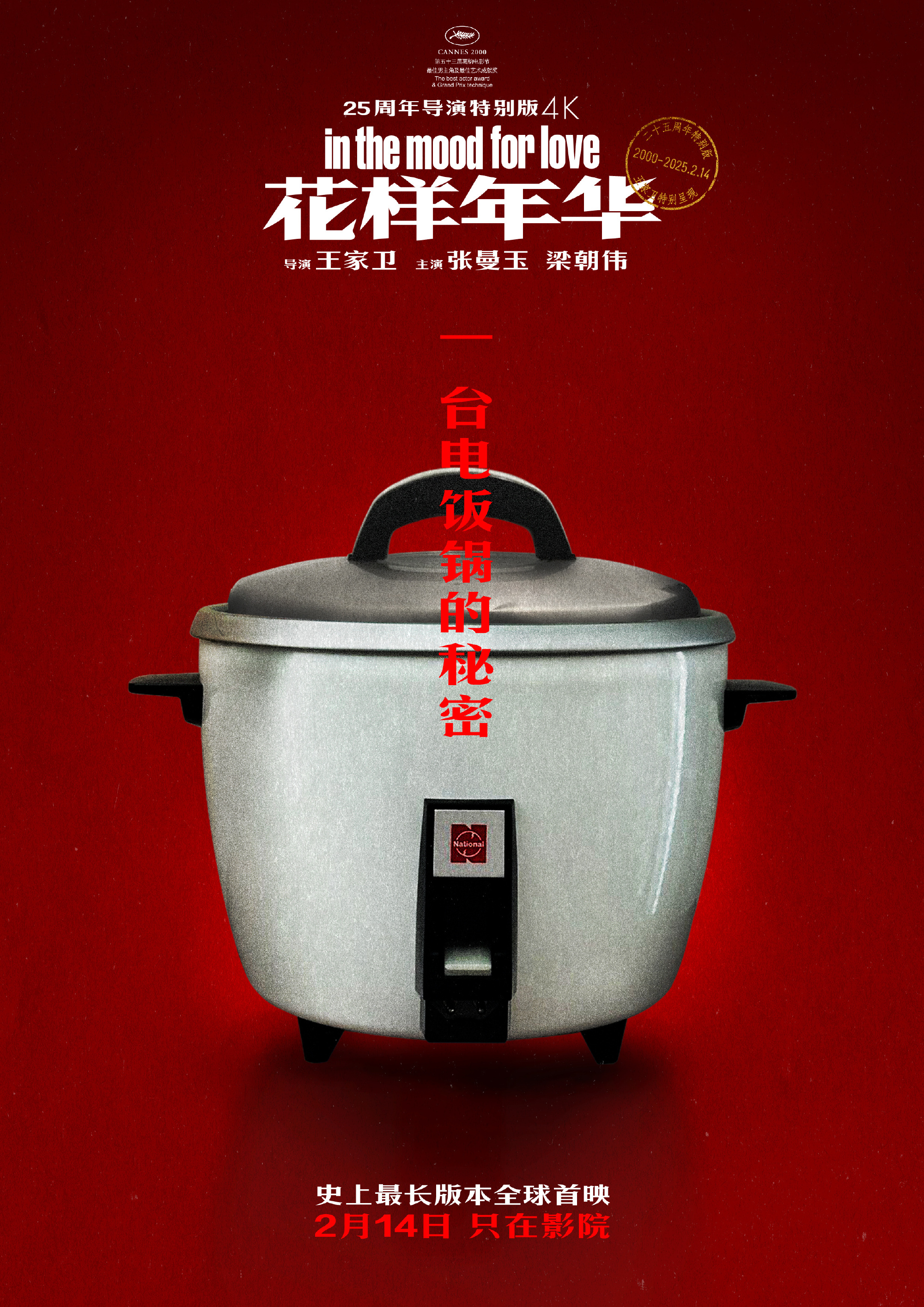 《花样年华》由王家卫执导,张曼玉和梁朝伟主演,讲述了20世纪60年代香港,报社编辑周慕云和秘书苏丽珍之间一段微妙而动人的情感故事。影片凭借精美的画面、细腻的情感以及独特的叙事风格,成为华语影坛的经典之作。此次导演特别版做了4K高清修复,王家卫还拿出珍藏25年的新片段,呈现21世纪苏丽珍与周慕云的 “全新可能”。