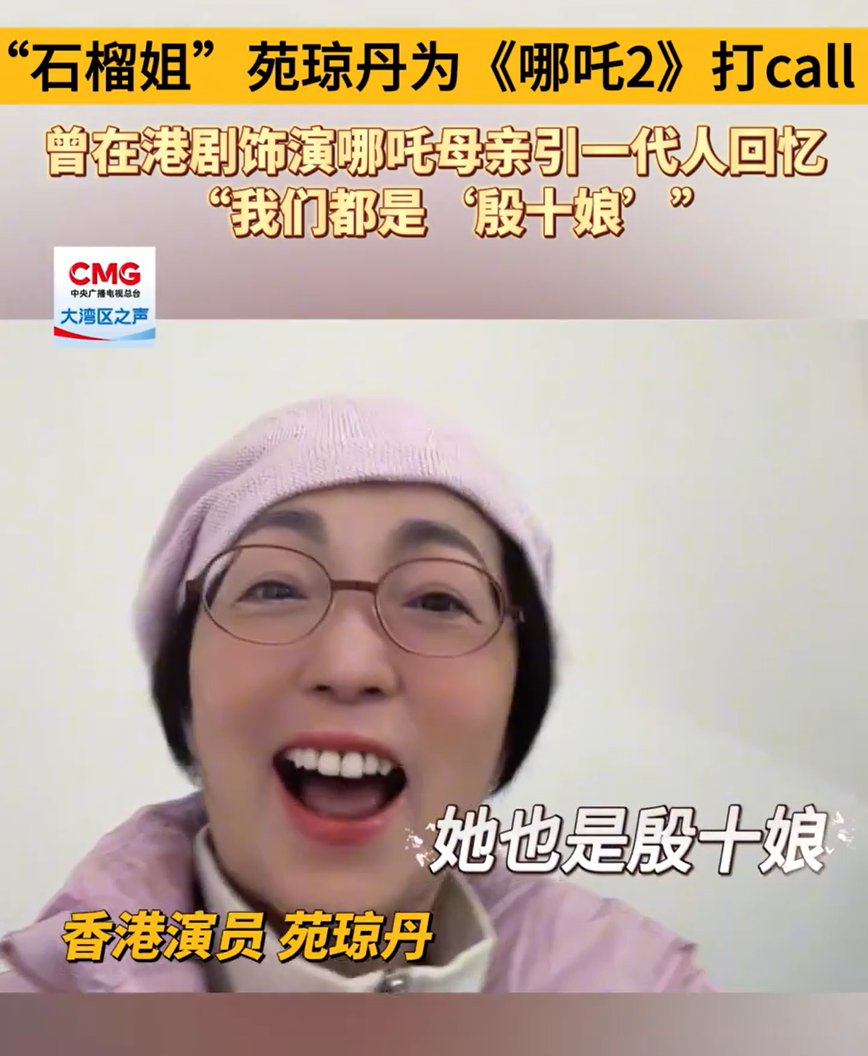 香港演员“石榴姐”苑琼丹也在社交媒体上发布了一段视频,回忆她在港剧中饰演哪吒母亲殷十娘的感人片段,为《哪吒2》深情“打call”。