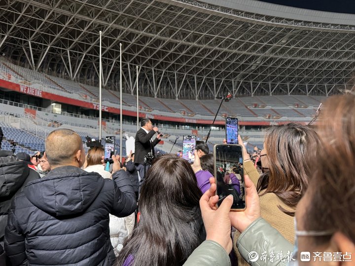 “山歌唱响泉城,这一站,济南”……2月15日,刀郎2025巡回演唱会济南站第二场在济南奥体中心体育馆内如约开唱。在距离演出场馆不远处的济南奥体中心体育场内,属于刀迷的狂欢之夜还在继续。许多未能抢到票的歌迷汇集于此,共唱刀郎歌曲,感受演唱会的火热氛围。