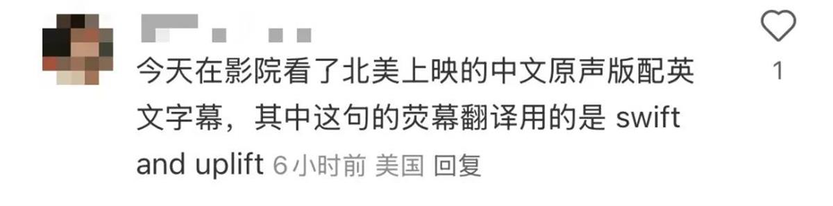 不少网友在观影后指出,在海外上映的《哪吒之魔童闹海》采用中文配音+英文字幕,其中“急急如律令”译文为“swift and uplift”。这一消息也得到了一家媒体驻外记者的证实。