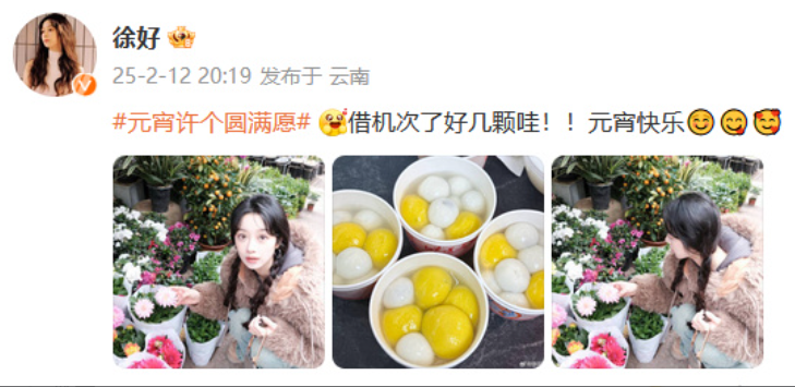 原来,近日有眼尖网友指出,张晚意和徐好元宵节分享的居然是同一碗汤圆!而且两人IP地址都在云南,疑似有恋情。