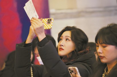 一名观众拍摄电影票以作纪念。 均 本报记者 赖鑫琳 摄