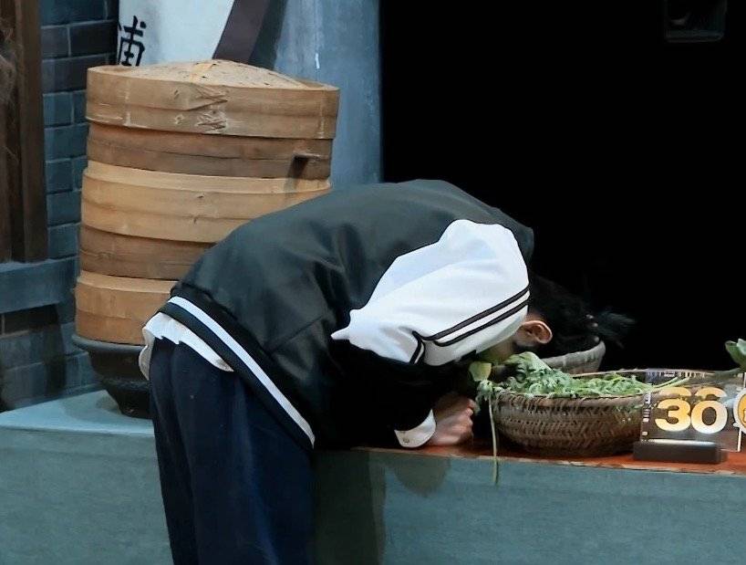 张嘉元的“头扎菜堆”(节目截图)