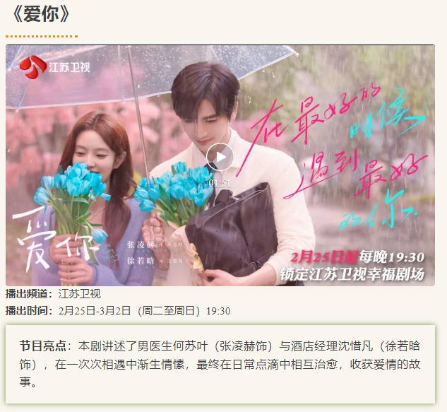 另据国家广播电视总局公众号介绍,该剧于2月25日起,每晚19:30在江苏卫视播出。
