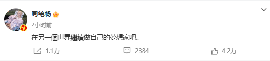 曾和方大同有过合作的另一位女歌手周笔畅也在社交平台写道:“在另一个世界继续做自己的梦想家吧”。