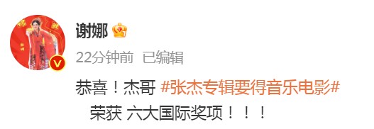 谢娜随后发文恭喜杰哥,并表示6个奖项中,自己最羡慕的是最佳演员(Jason Zhang )和最佳表演奖。“因为我可是学表演专业的啊”!