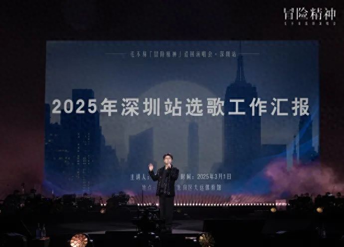 3月1日,毛不易“冒险精神”巡回演唱会在深圳龙岗大运体育馆火热开唱。来到活力满满的深圳,就连选歌环节也卷出了新花样,演唱会舞美化身打工人最熟悉的电脑屏幕,工作中的老朋友——PPT闪亮登场。