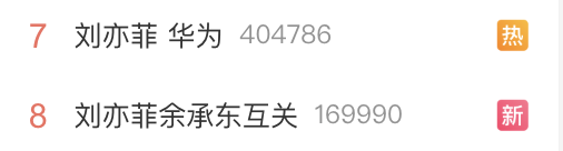 3月8日下午,“刘亦菲 华为”“刘亦菲余承东互关”等词条冲上微博热搜。