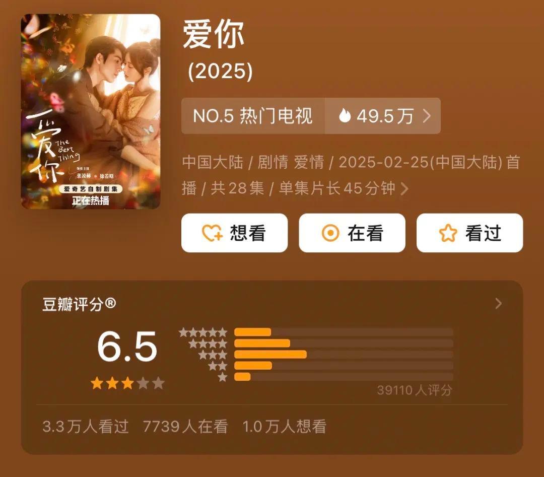 张凌赫、徐若晗主演的《爱你》,6.5分。