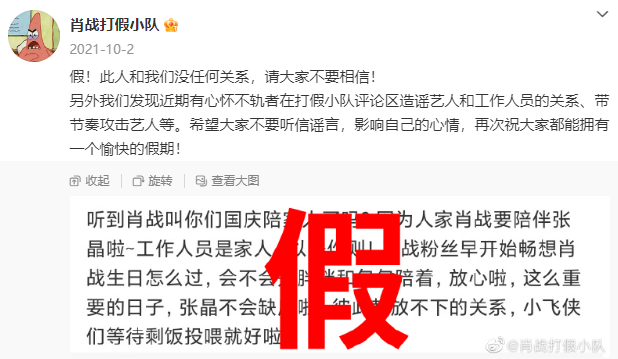 由肖战工作室运营的“肖战打假小队”发文称:“与艺人无关!这类内容已经辟谣过很多次了!艺人单身。别造谣了!”