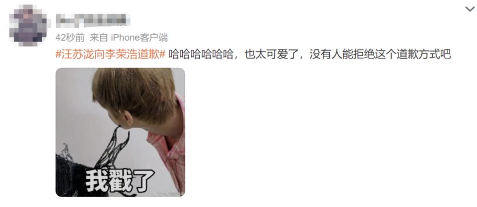 对此,网友纷纷表示:“哈哈哈哈哈哈,也太可爱了,没有人能拒绝这个道歉方式吧~”“下一次换另一边拥抱吧