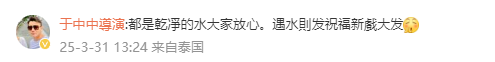 对此,导演于中中回应:“都是干净的水,大家放心,遇水则发祝福新戏大发。”