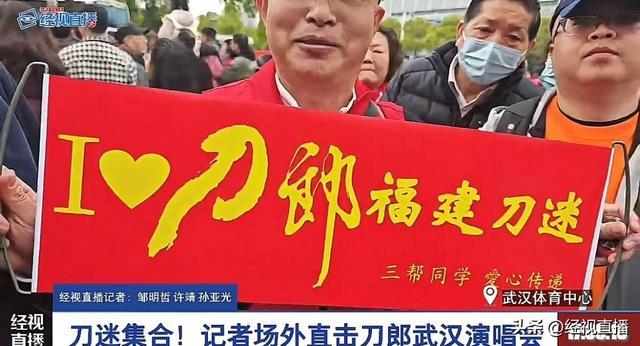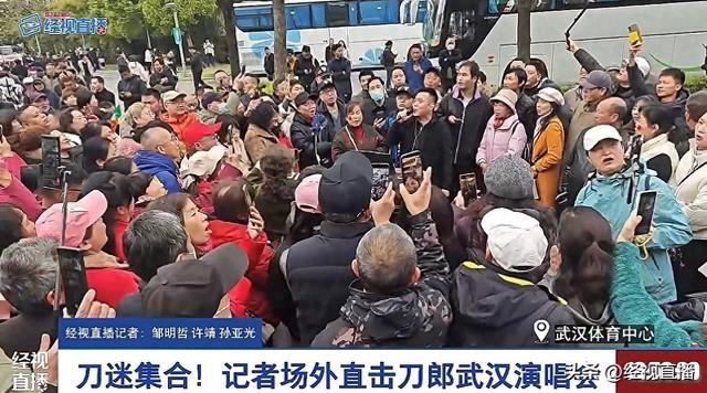 3月29日下午5点,经视直播记者来到武汉体育中心体育馆,距离开场还有两小时,场馆外已是一片沸腾,人山人海,来自全国各地的“刀迷”自发组织起大合唱,《2002年的第一场雪》《冲动的惩罚》等经典旋律此起彼伏。