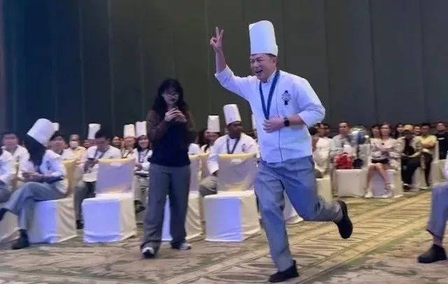 让人没想到的是,他跨界转行开始了厨艺学习之旅,还拿到了骄人的成绩。从学校分享的毕业礼照片和视频来看,陈键锋领奖时一路小跑上台,举着V字手势,兴奋之情溢于言表。