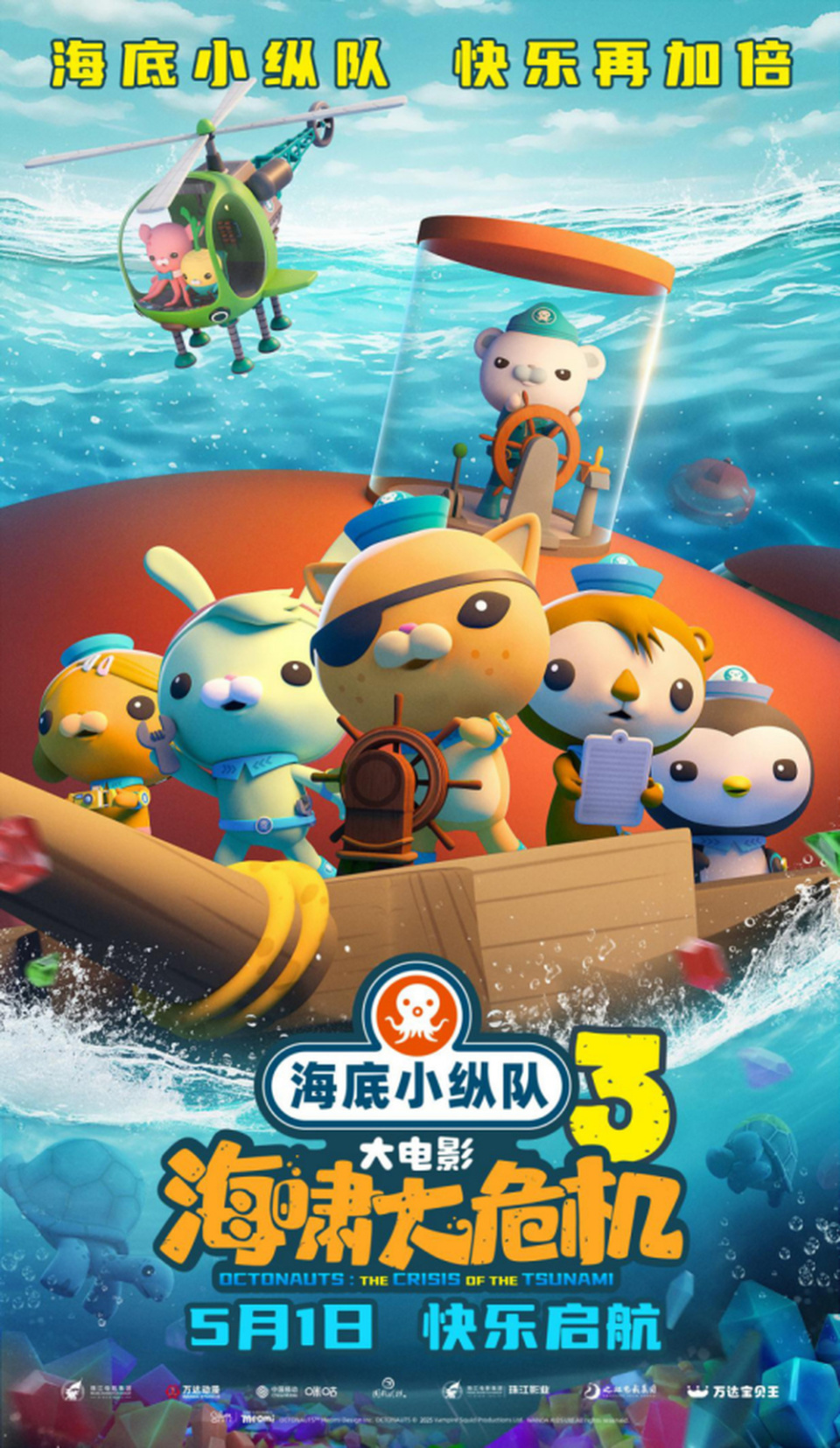 全球知名动画IP《海底小纵队》系列大电影的第三部:《海底小纵队:海啸大危机》正是宣布定档5月1日。面对海啸大危机,小纵队在争分夺秒的救援过程中,会上演哪些有趣又刺激的故事?15年经典动画IP全新登场,带来精彩的冒险场景、丰富的角色成长线和精美的视觉效果,还会有哪些惊喜,期待影片上映后一起揭晓答案!