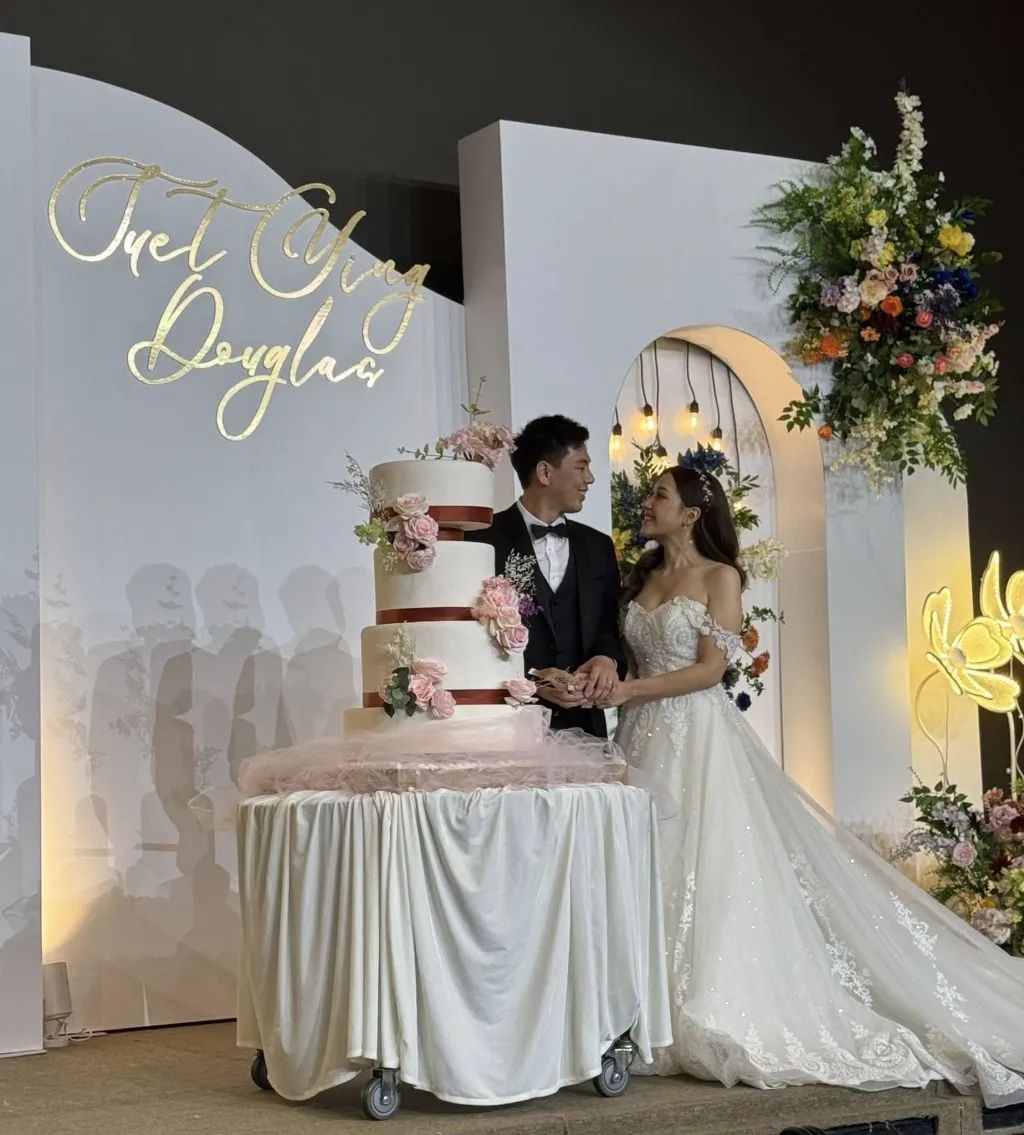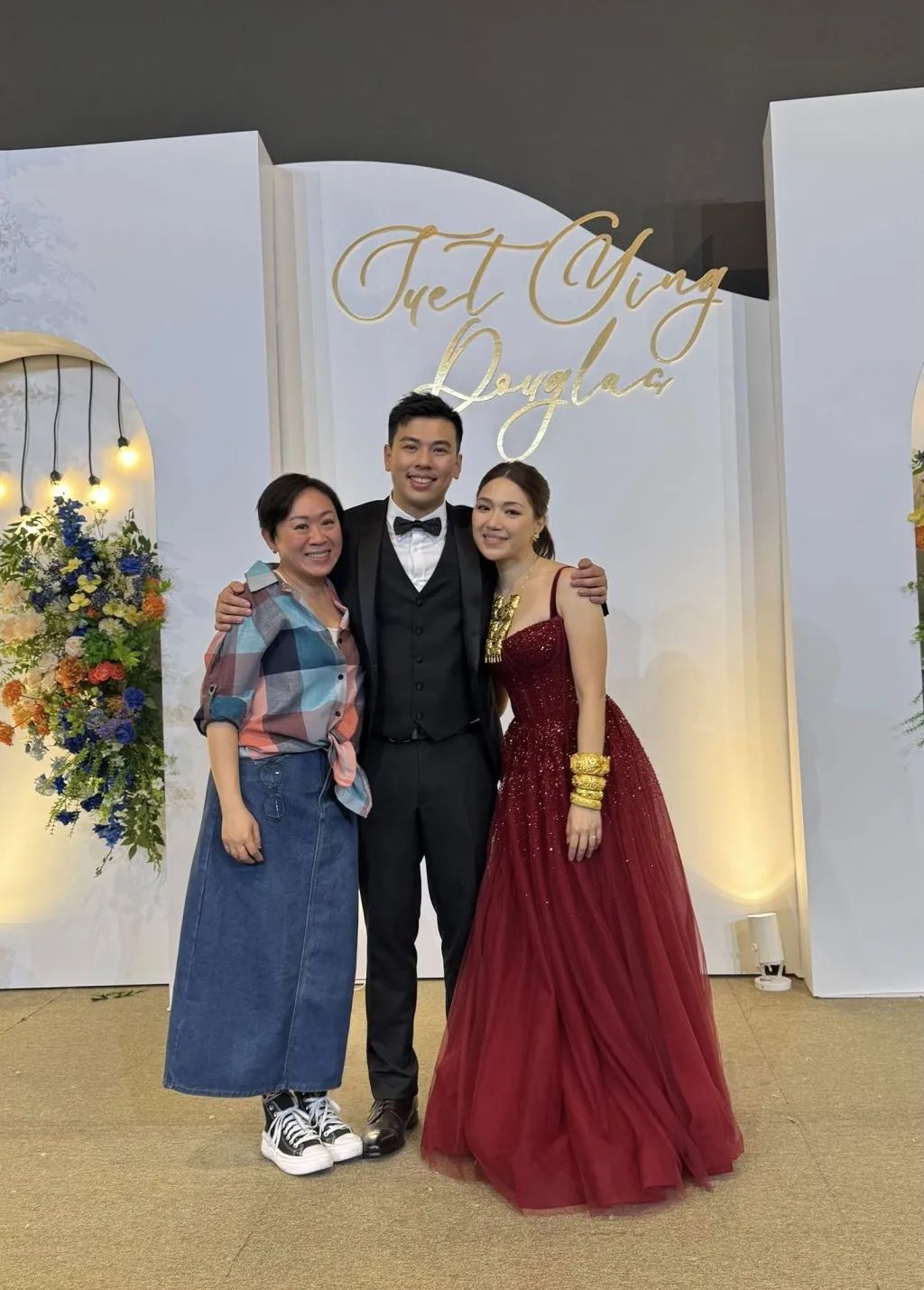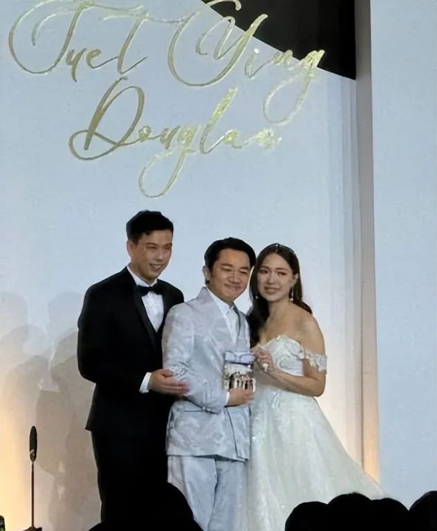 婚礼布置简约而温馨,礼堂门外放有多张巨型婚照,出席的宾客在社交平台贴上场内的相片并说:“祖红结婚了,祖蓝嫁妹了,狂放催泪弹,感动,幸福满满。”