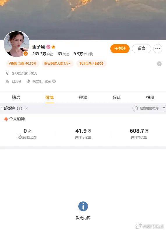 近日,有网友发现金子涵微博已全部清空,有网友表示这个是要退圈的表现。