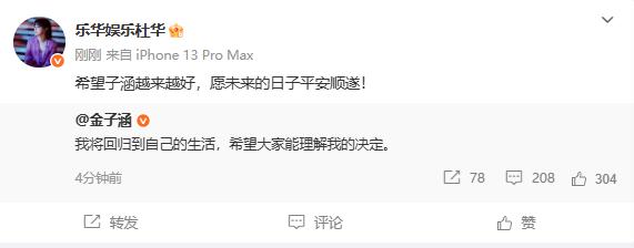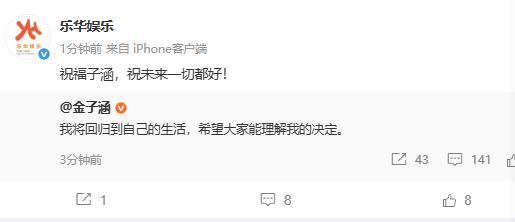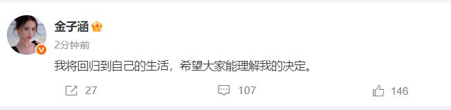 刚刚,金子涵回应退圈:我将回归到自己的生活,希望大家能理解我的决定。