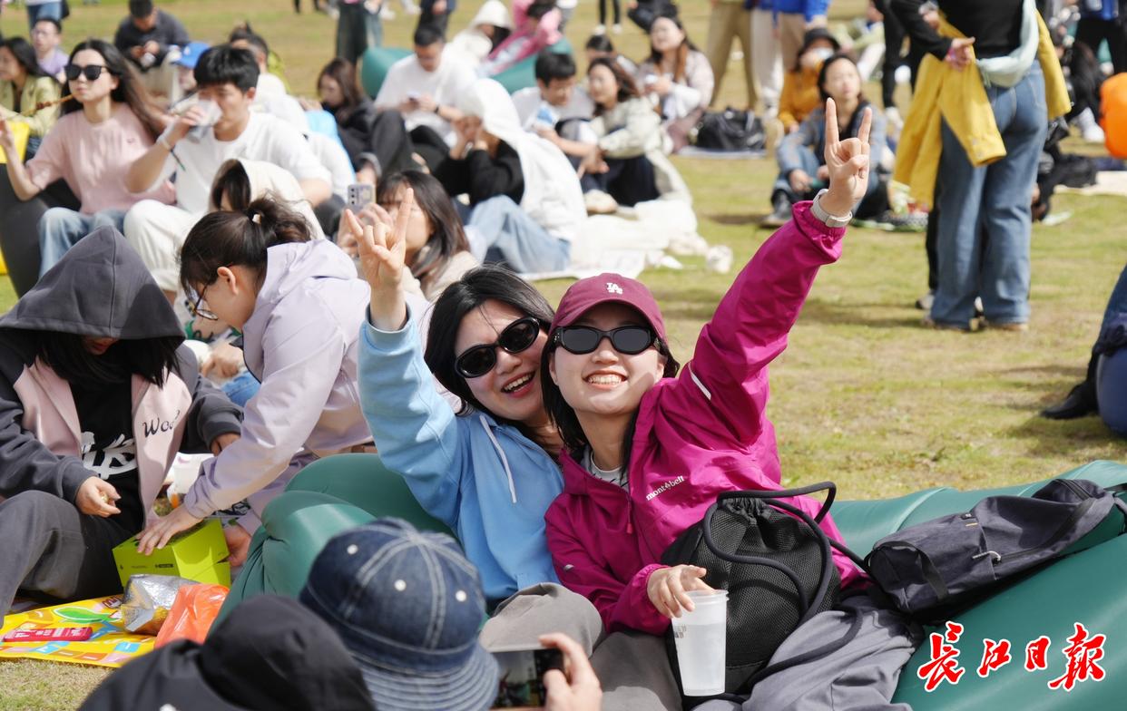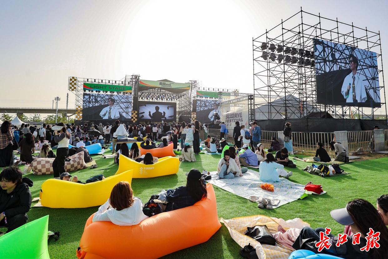 此次音乐节设有双舞台,并配备地垫租赁、美食市集、文创摊位等配套服务。从汉阳赶来的王程与朋友搭建起“懒人沙发阵”。王程说:“从下午4时一直到晚上10时,我们享受着一场关于音乐的马拉松。”