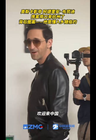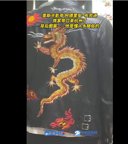4月13日,奥斯卡影帝阿德里安·布劳迪携家带口来杭州,他的衣服背后是龙的图案,被网友评价“太入乡随俗了”。