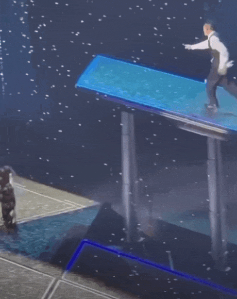 还有一处舞台的升降台设计,刘德华险些踩错点跌落。