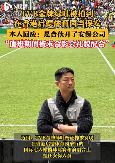 近日,TVB金牌绿叶杨证桦被发现在香港启德体育园举行的国际七人橄榄球比赛和演唱会上担任安保人员。