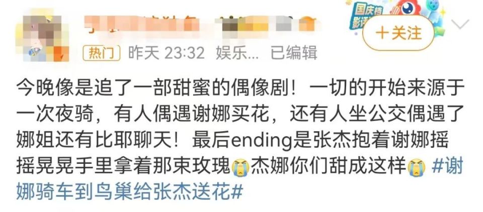 今天(4月18日)上午,“谢娜夜骑到鸟巢给张杰送玫瑰花”的词条,冲上文娱榜热搜。