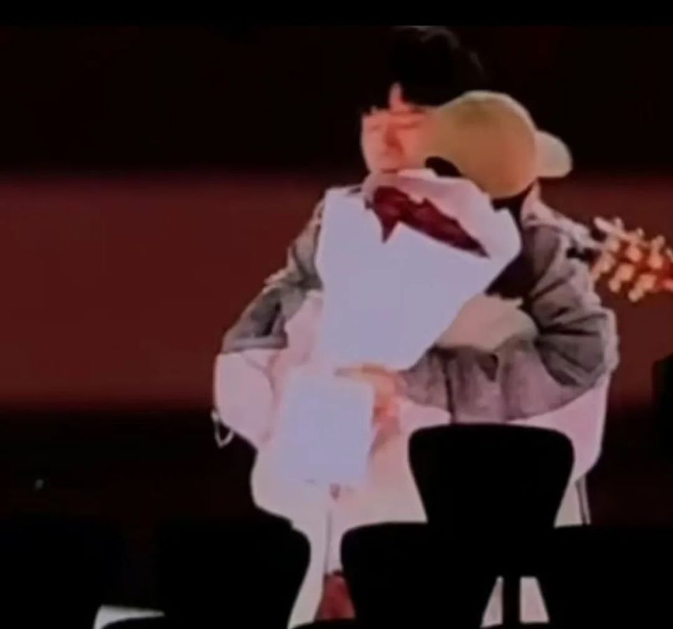 另有网友晒图,谢娜给张杰献花,还在台上给了他一个大大的拥抱。