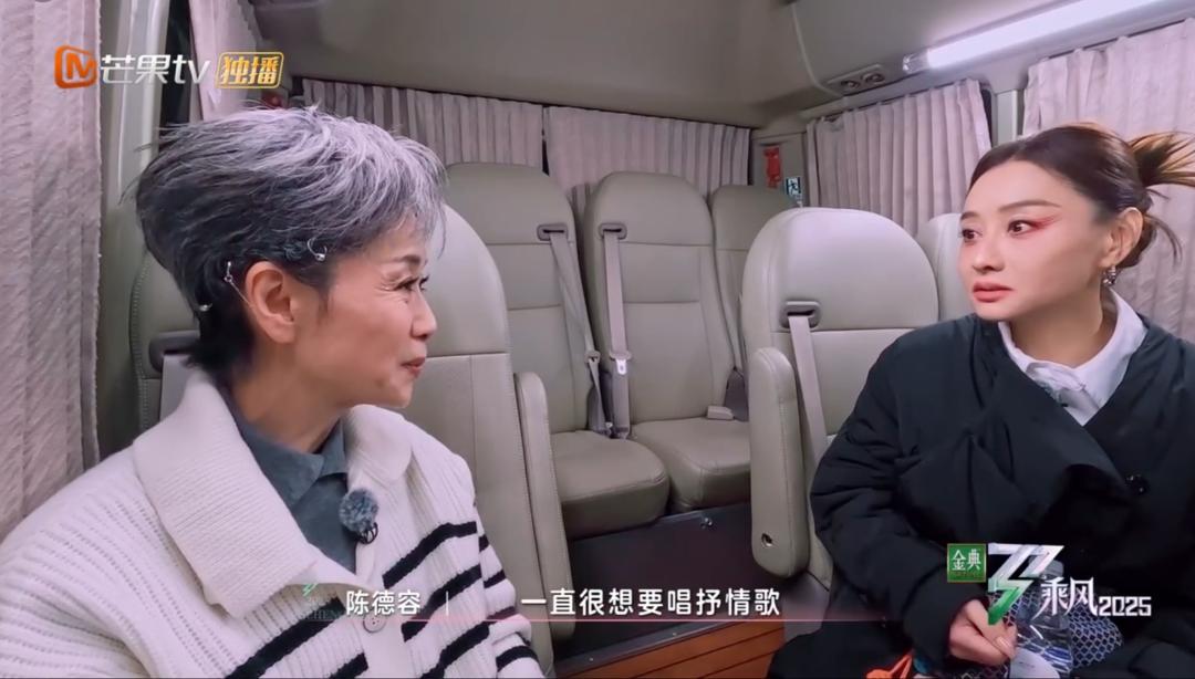 《乘风2025》三公选人环节,陈德容因为想要唱抒情歌,所以选择加入叶童组,叶童委婉的表达这次不唱抒情歌,导致陈德容没有人选,陈德容轮空后,自动加入了侯佩岑组。