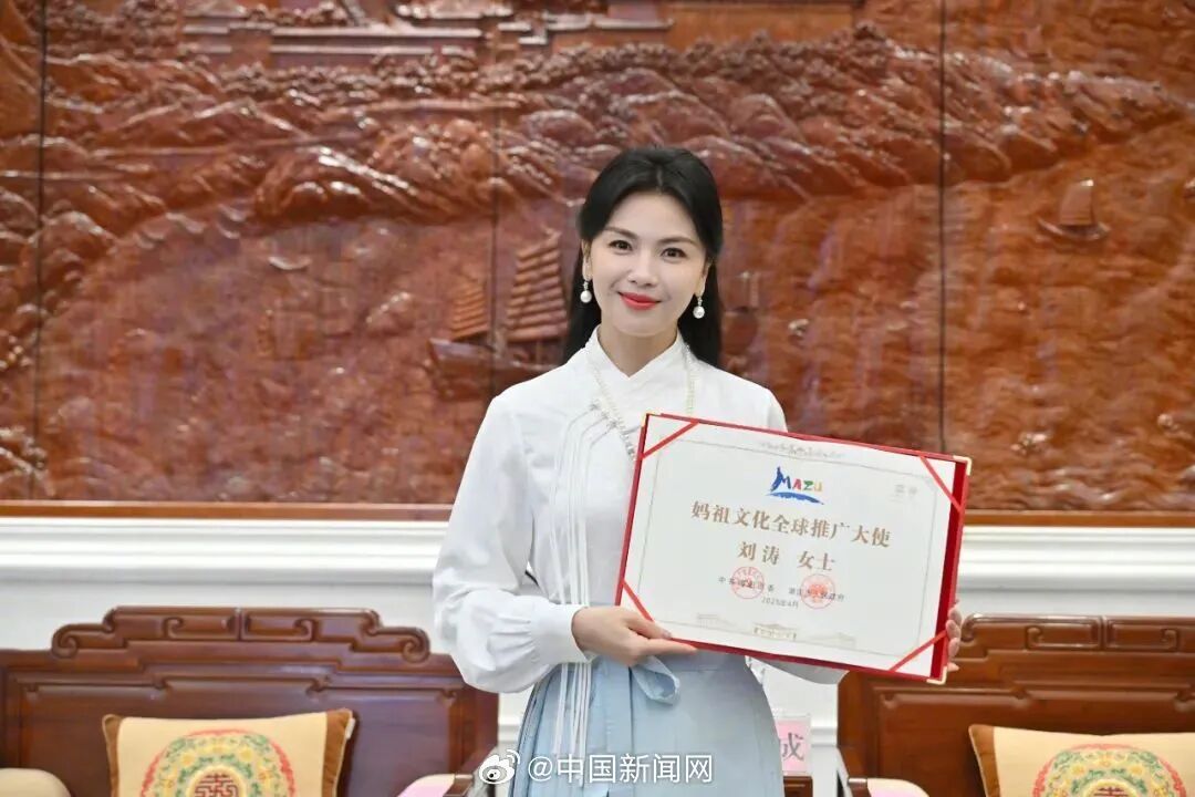 4月19日,福建省莆田市授予演员刘涛“妈祖文化全球推广大使” “莆田文旅推荐官”荣誉称号。