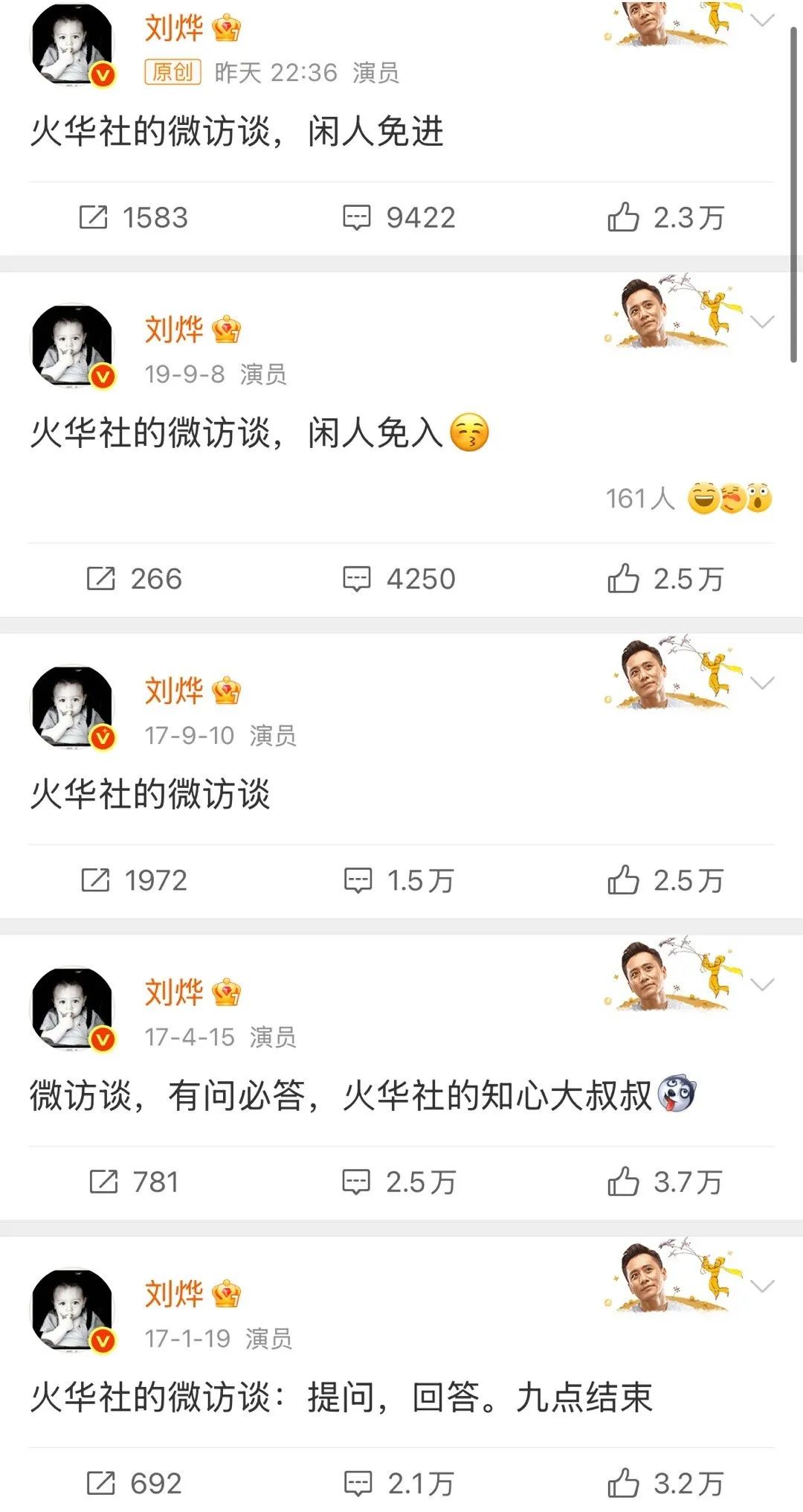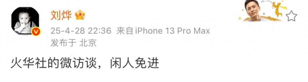 昨晚,刘烨在个人社交平台发文宣布火华社微访谈回归!