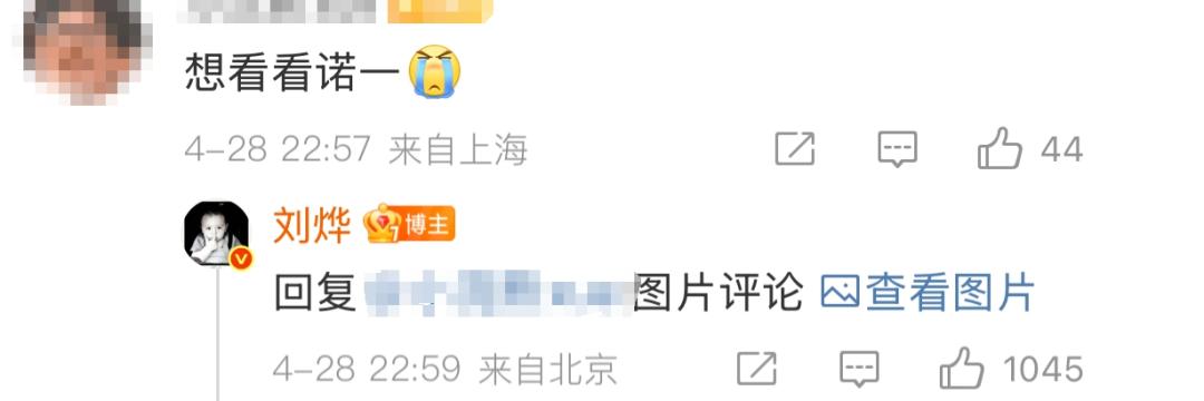 有网友表示想看看诺一,刘烨在评论区直接晒出儿子诺一最新生活照。
