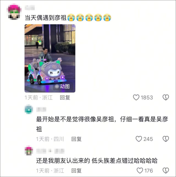 此前,吴彦祖还被偶遇在街头开摇摇车。网友晒图说当天偶遇吴彦祖:“还是我朋友认出来的,低头族差点错过。”