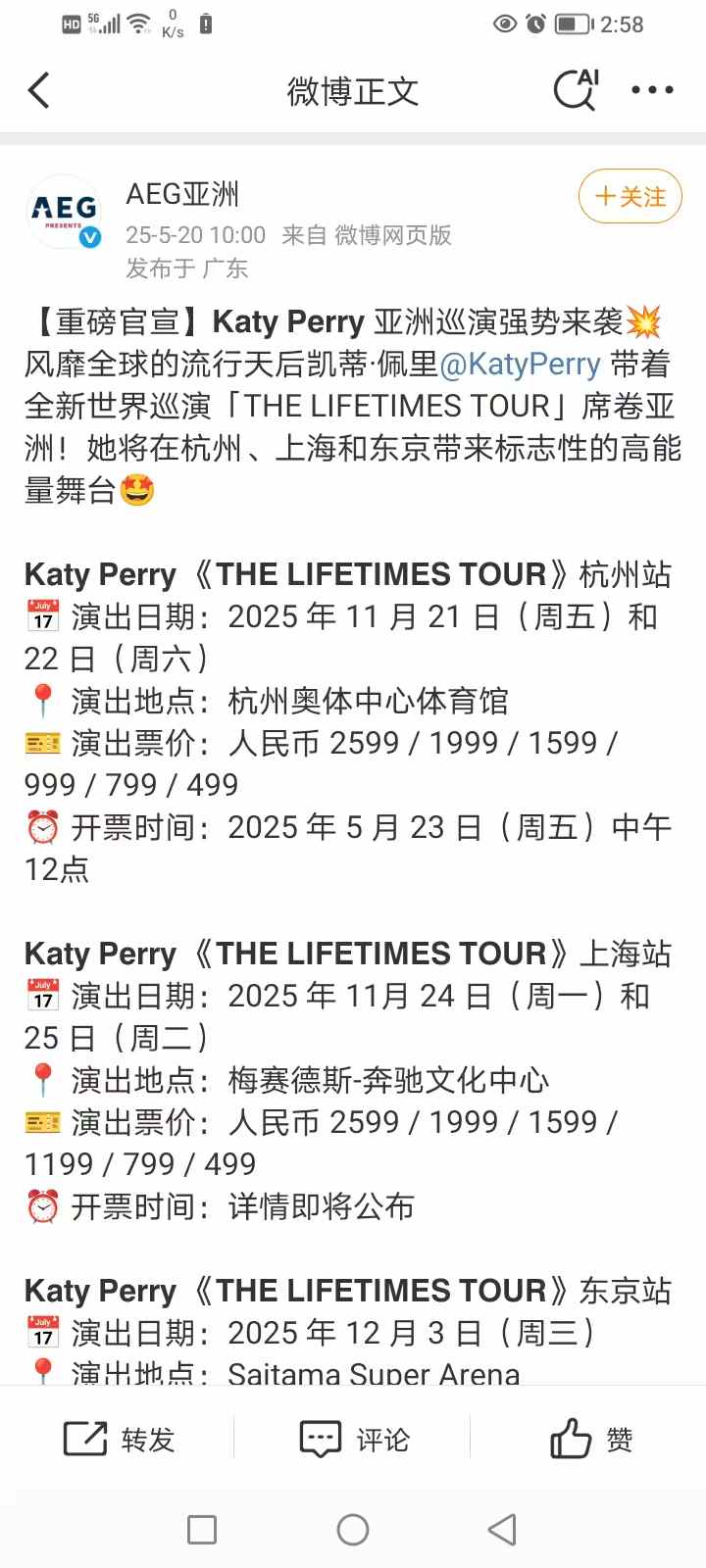 据看看新闻报道,凯蒂·佩里(KatyPerry)的演唱会正式官宣!