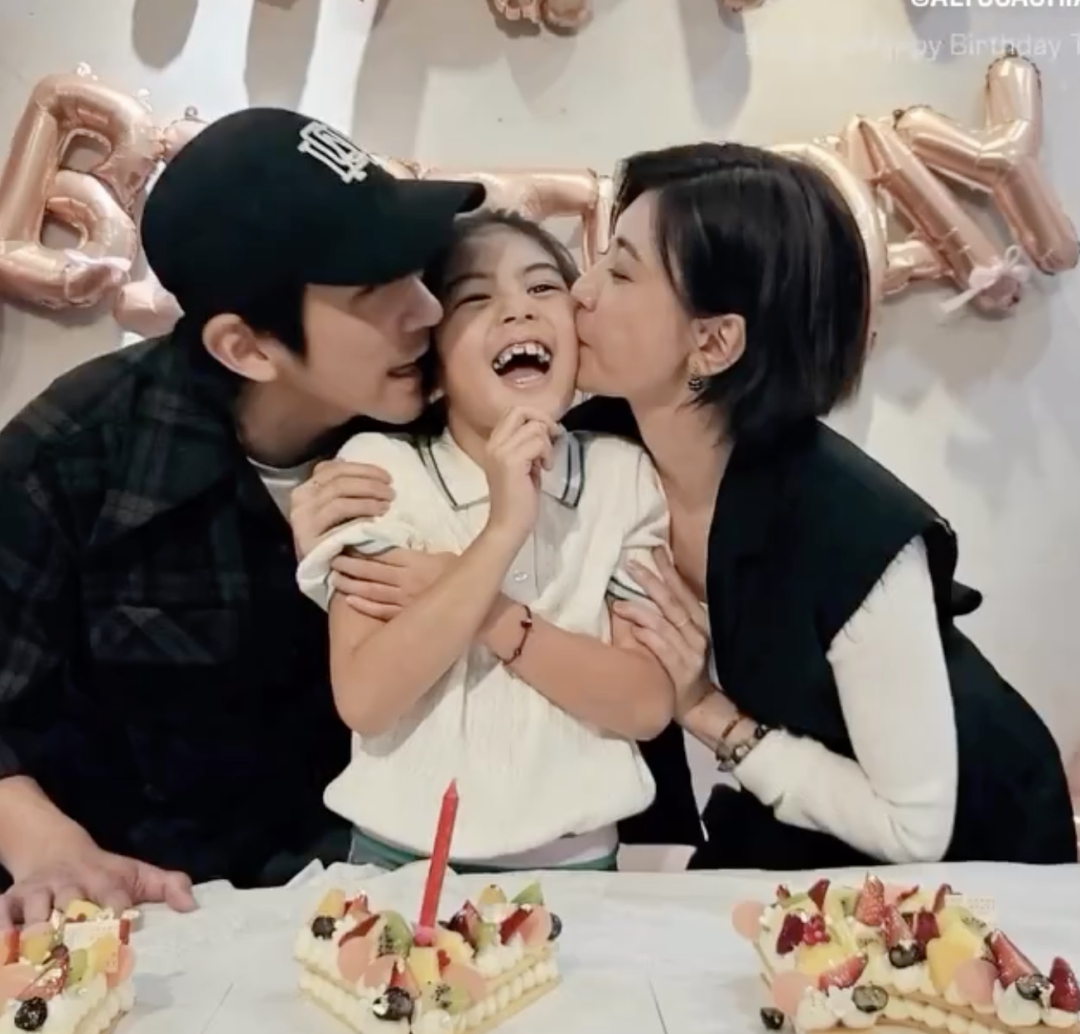 今年3月,贾静雯发文庆祝女儿8岁生日,并晒出一家人庆生视频。