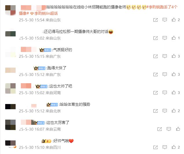 对此,有网友评论:“摄像老师好好锻炼吧”“跑得太快了”……