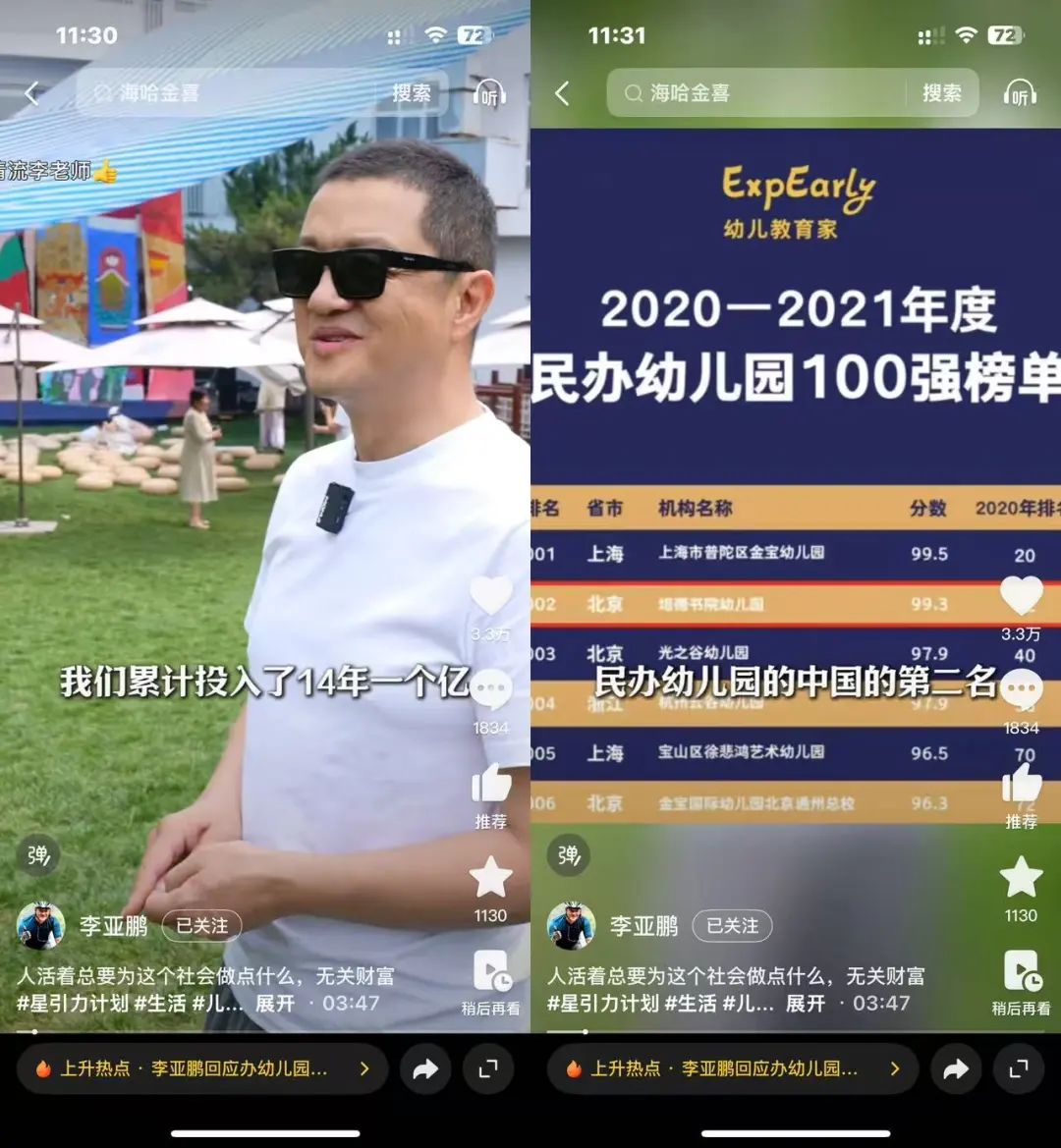 李亚鹏宣布无偿移交花费上亿幼儿园,