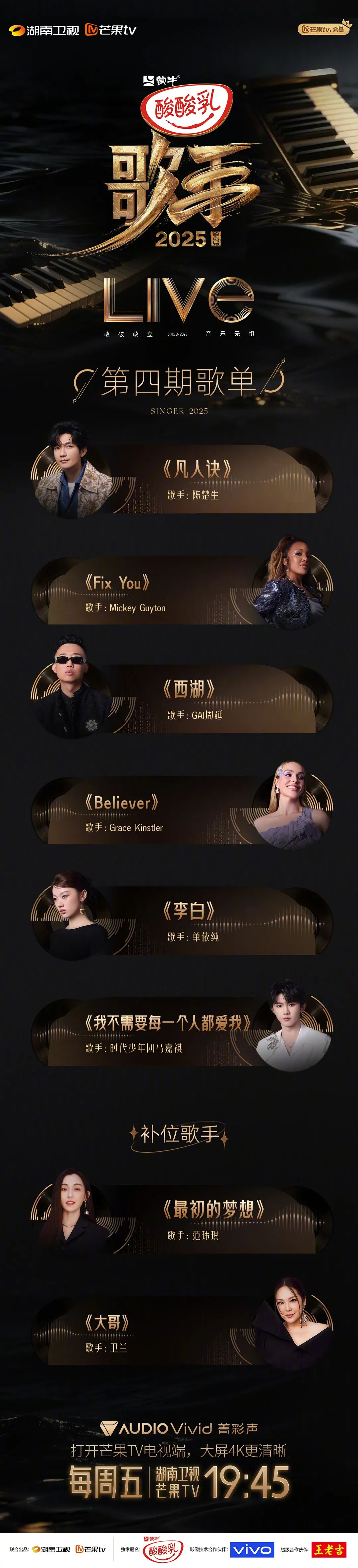 6月6日午间,《歌手2025》第四期歌单官宣: