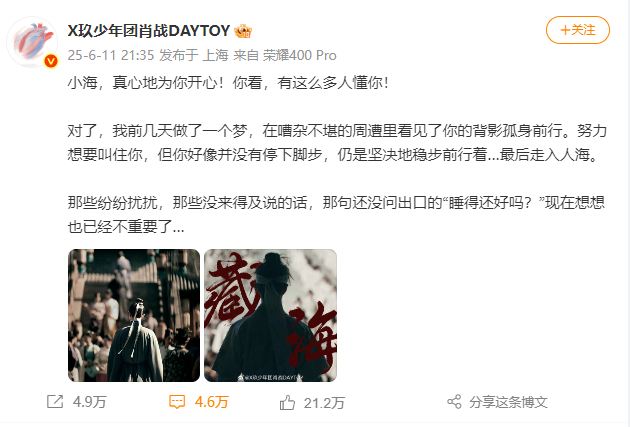 6月11日,《藏海传》正式收官,主演肖战发文告别: