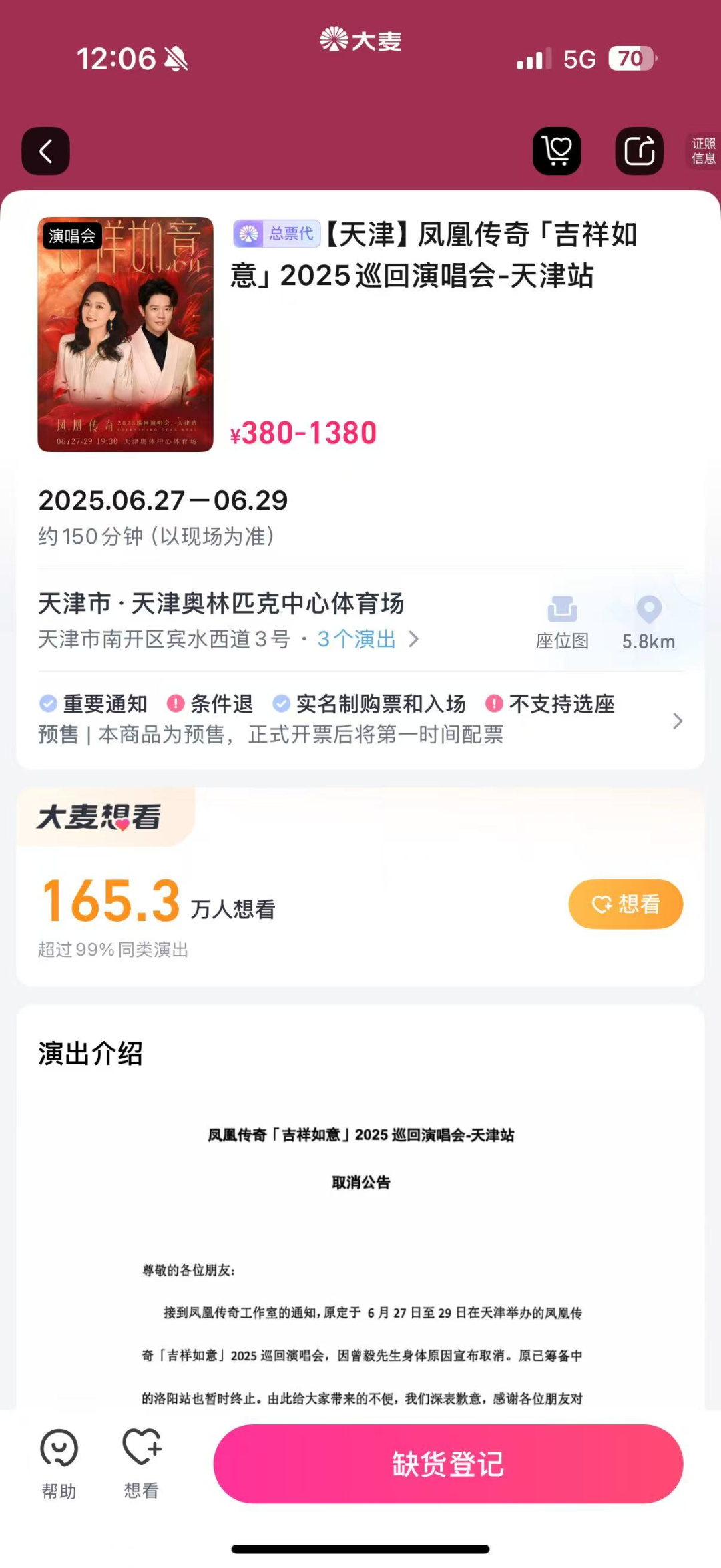 凤凰传奇演唱会天津站取消!退票补偿方案将尽快发布