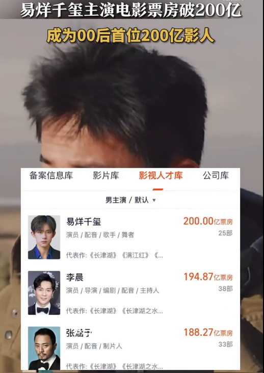 据灯塔专业版最新数据,易烊千玺主演电影累计票房于6月27日正式突破200亿元大关,成为中国影史首位达成此成就的“00后”演员。